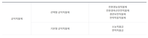 농업활동을 통해 식품안전, 환경보전, 농촌유지 등 공익을 창출하도록 농업인에게 보조금을 지원하는 제도