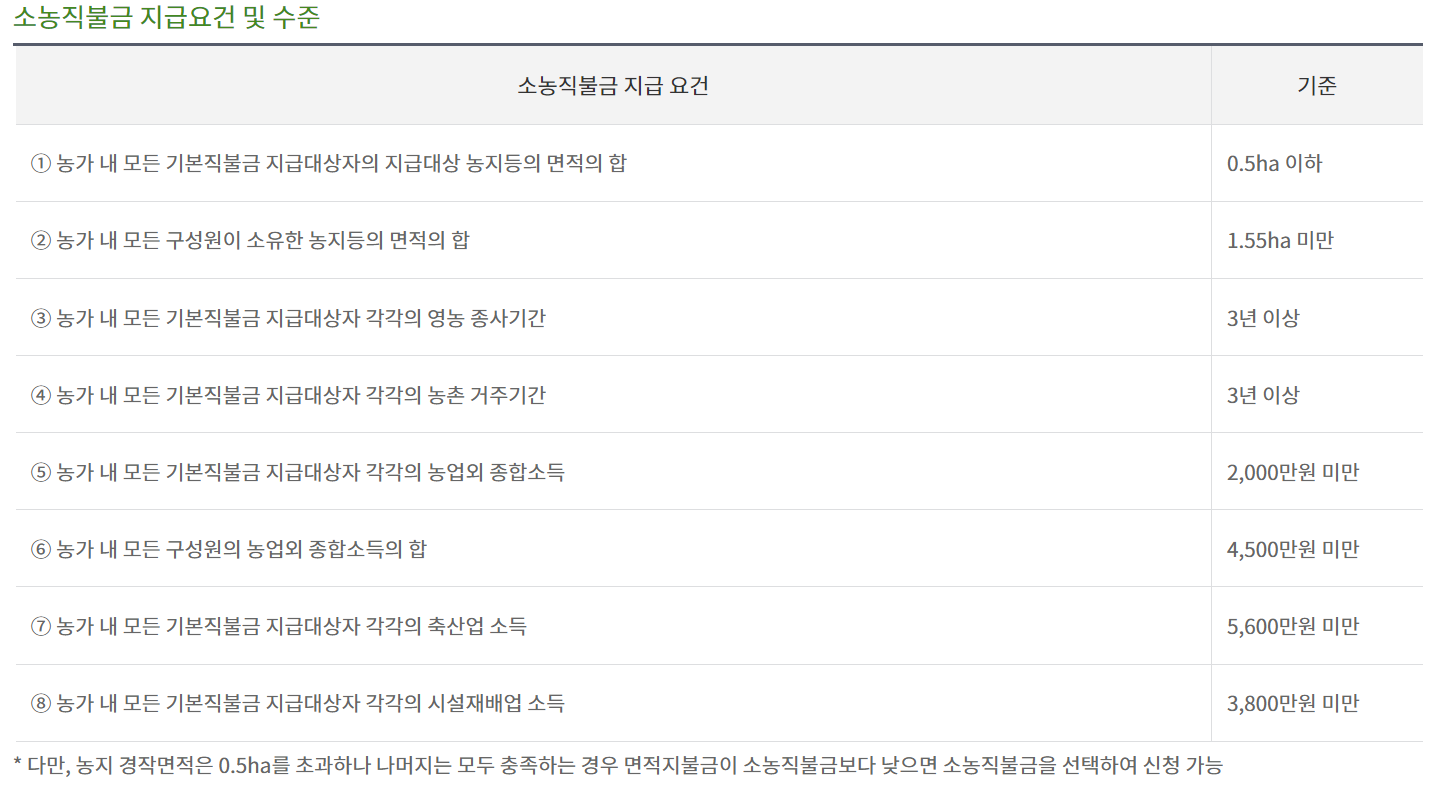 (지급 요건) 아래 요건을 모두 충족한 농가에게 소농직불금 지급