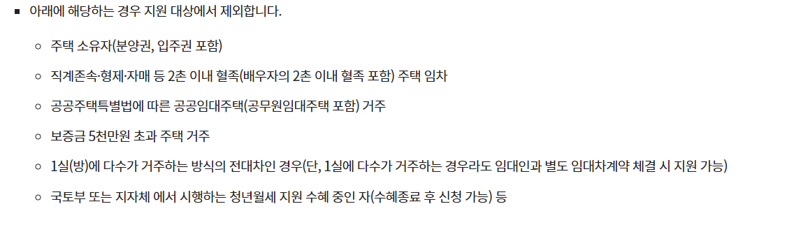 - 실제 월세 범위 내에서 지원, 임차보증금, 관리비 등은 제외 후 지원합니다.