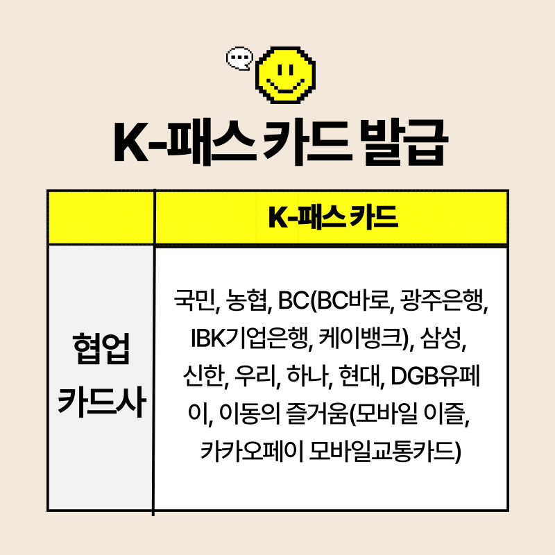 K-패스 교통카드 발급 가능한 카드사