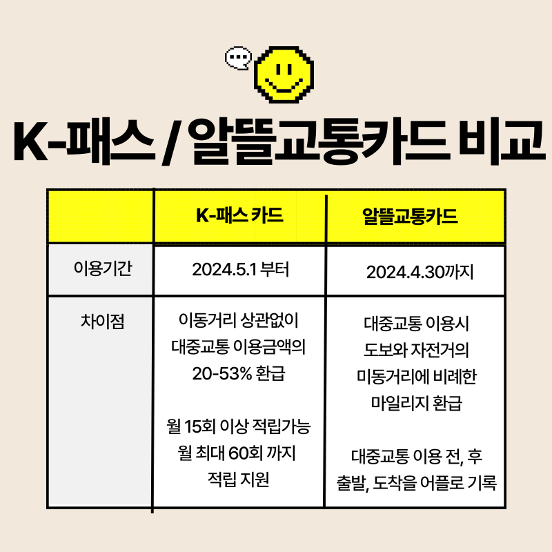 K-패스 교통카드와 알뜰교통카드 비교